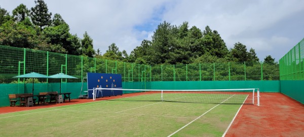 테니스장은 인조잔디에 규사를 충전한 국제 규격의 코트 한 면이다.