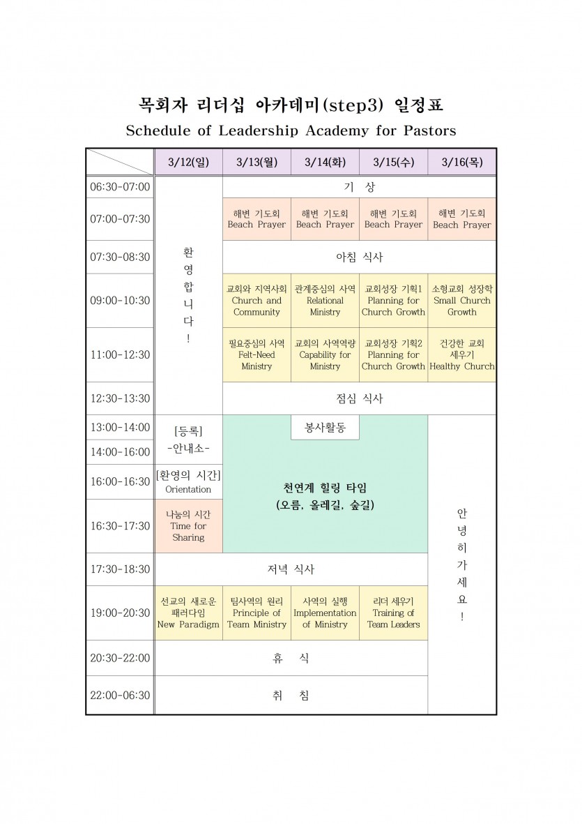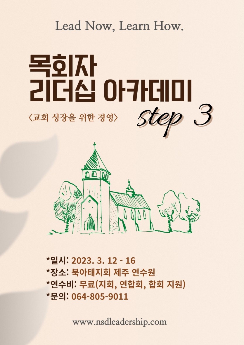 다음과 같이 목회자 리더십 아카데미 step 3을 개최합니다.
