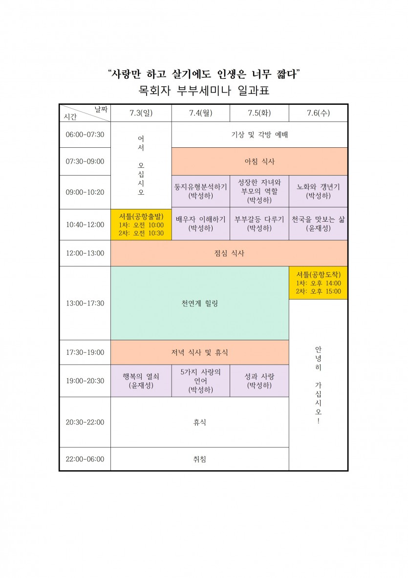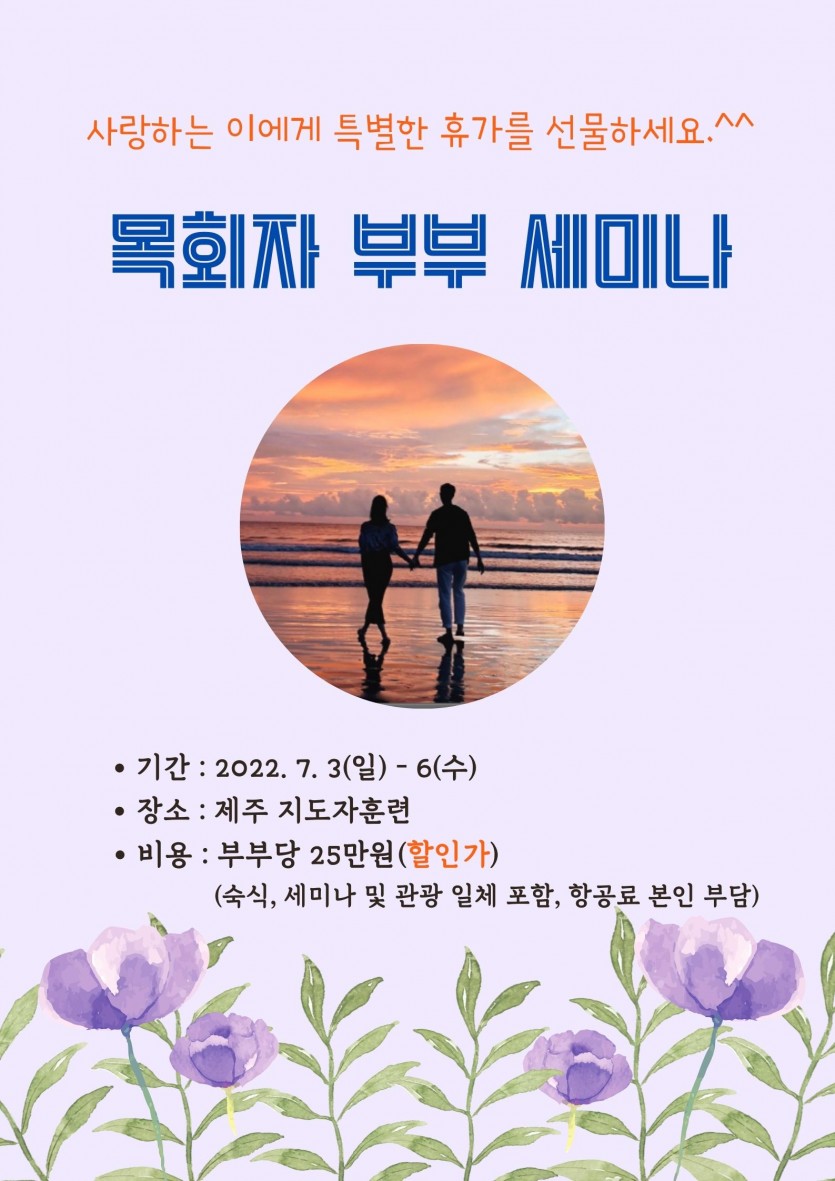 목회자 부부 세미나를 아래와 같이 개최하오니 많은 참여 바랍니다.